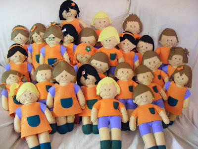 Natasha nos contaba que estos muñecos tan preciosos fueron un encargo de una profesora de infantil para la graduación de sus alumnos. Todos están personalizados y cada niño/a tenía su réplica.