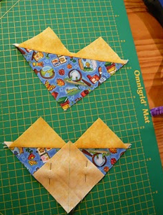 Colocar el otro cuadrado en el otro extremo del triángulo y repetir la operación: coser, cortar y planchar.