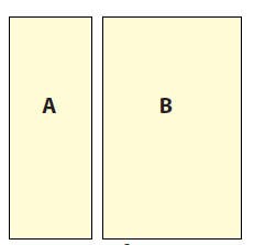 Por ejemplo, si necesitamos que nuestro bloque mida 5 x 3 pulgadas (12,7 x 7,6cm), tendremos que cortar el cuadrado grande a 6 1/4 pulgadas (15,8cm), y los pequeños a 3 7/8 pulgadas (9,8cm).