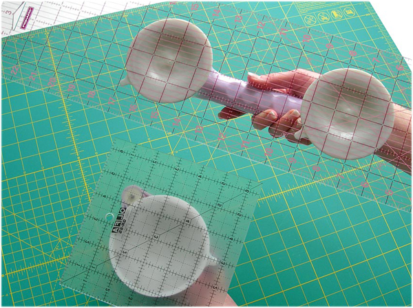 ¿Para qué sirve? Pues es muy fácil, se trata de unas ventosas que se sujetan a la regla, como podéis ver en las fotos, para que ésta no se resbale cuando estamos cortando las telas.
