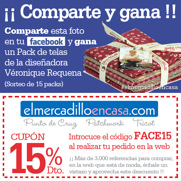 Desde hoy (31/07/2015) y hasta el próximo 31/08/2015 tenéis la oportunidad de entrar en el Sorteo y ganar un pack de 5 Fat Quarters (45 x 55cm) de la diseñadora Véronique Requena.
